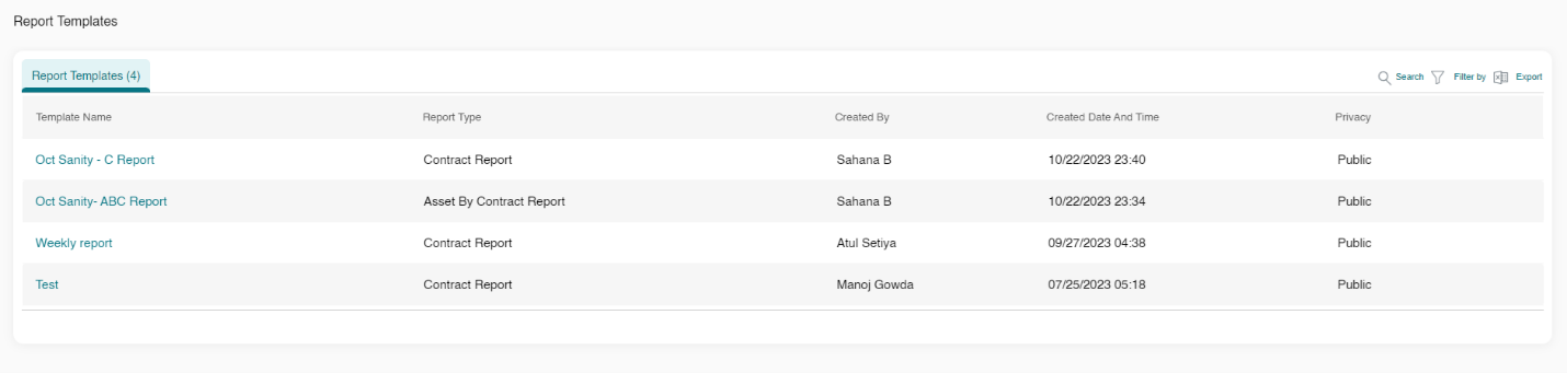 • Filters: There are two filters common with Application In-Progress. One is the Schedule filter. The data can be displayed on weekly or Monthly basis. Next to it is Currency filter. Currency filter comprises all the currencies associated with existing contracts. So if you choose CAD, all the contract with CAD are displayed here.